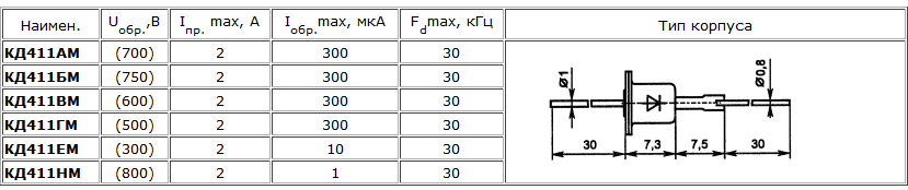 Давайте рассмотрим характеристику диода КД411АМ. Ищем его характеристики в интернете, вбивая в поиск “даташит КД411АМ”