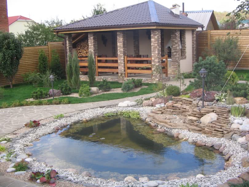 Можно выбирать место под пруд рядом с беседкой или местом отдыха, чтобы можно было любоваться водой во время отдыха.