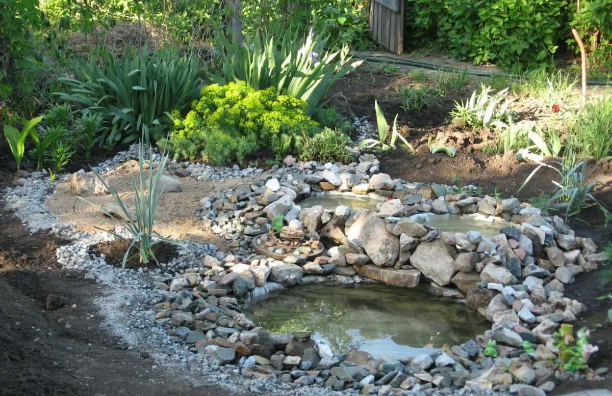 - дно укрываем камнями и засыпаем песком (подобного рода гидроизоляция утратит свои свойства уже через несколько лет);