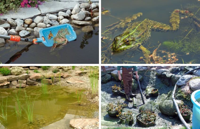 - трудоёмкость замены воды — со временем она становится мутной и затхлой, поэтому через определённый промежуток времени нужно осушить пруд, очистить его дно и заново наполнить;