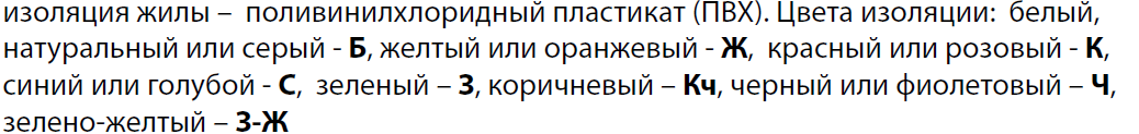 - Первый символ –материал жилы, если данный символ отсутствует, значит жила – из меди.