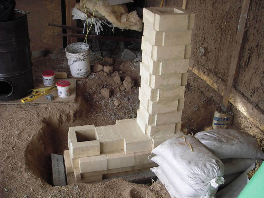 Другой способ – выложить из кирпича горизонтальные дымоходные каналы прямо по поверхности пола и устроить сверху шикарную глинобитную лежанку с подогревом, подключив к ней печь ракетного типа. Тут важен верный подбор протяженности каналов, чтобы избыточного давления хватило на их преодоление, в противном случае все же придется позаботиться об организации естественной тяги.