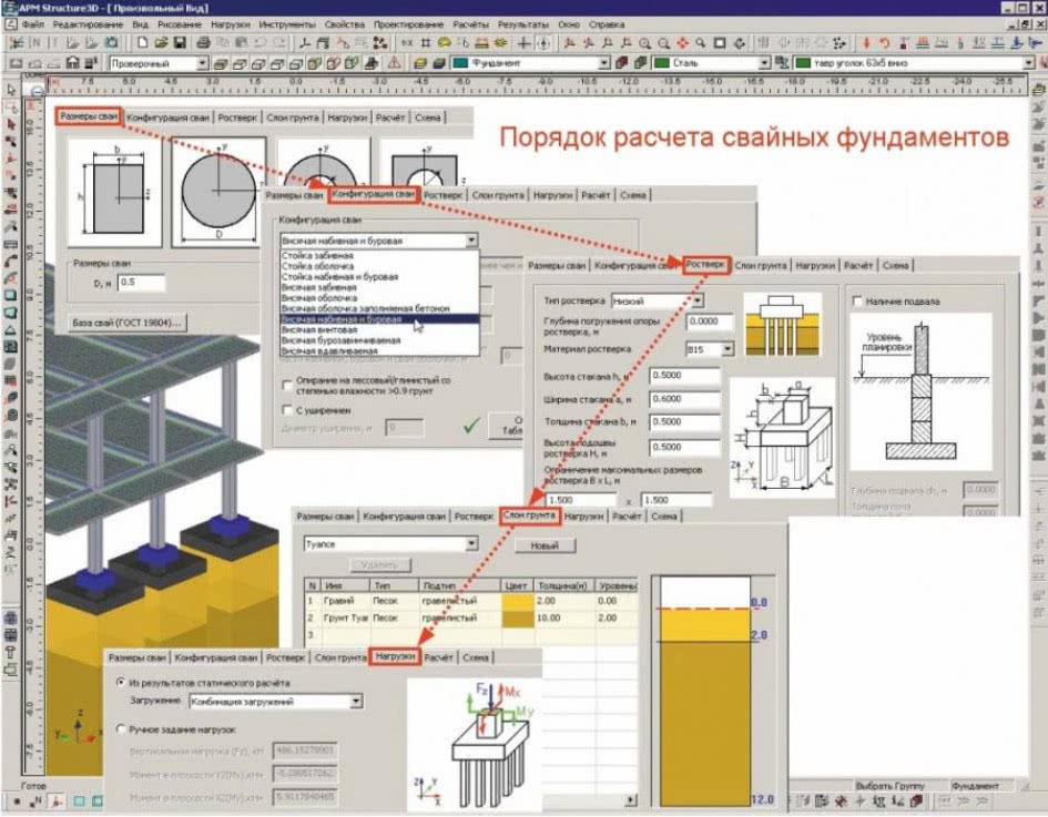 Схема расчета арматуры для свайного буронабивного фундамента.