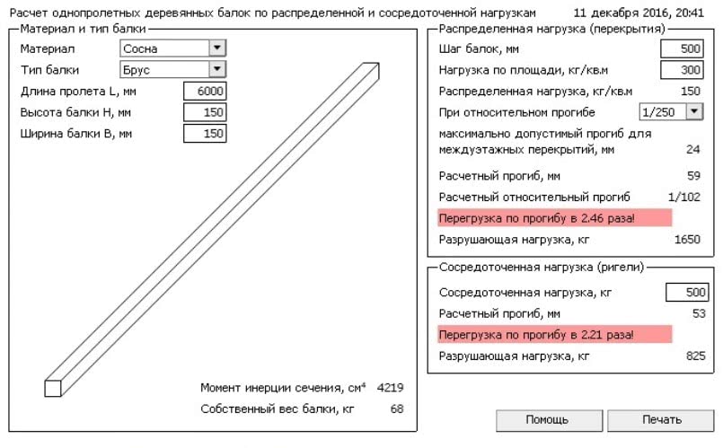 Проседанию или частичному разрушению перекрытия могут послужить разные причины, например, слишком большой шаг между лагами, прогиб поперечин, слишком малая площадь их сечения или дефекты в структуре. Чтобы исключить возможные эксцессы, следует выяснить предполагаемую нагрузку на перекрытие, будь оно цокольное или межэтажное, после чего используем калькулятор балок, учитывая их собственную массу. Последняя может меняться в бетонных перемычках, вес которых зависит от плотности армирования, для дерева и металла при определенной геометрии масса постоянна. Исключением бывает отсыревшая древесина, которую не используют в строительных работах без предварительной сушки.