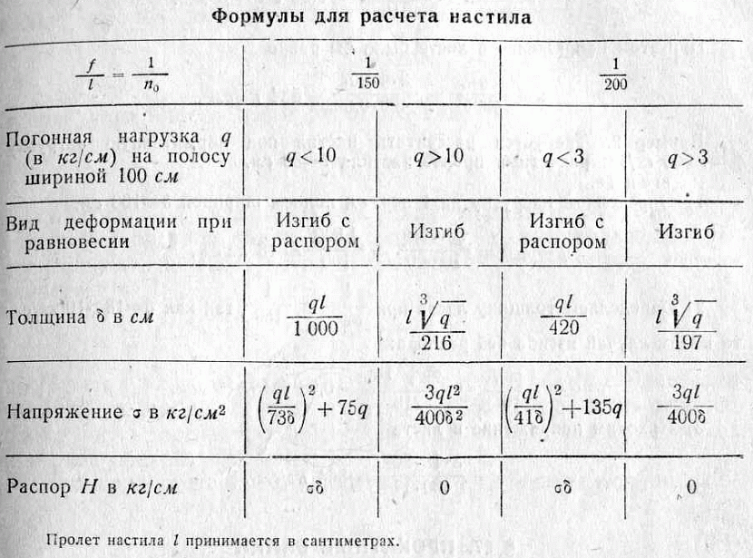 Нагрузки разделяют на нормативные и расчетные. Нормативные устанавливаются строительными нормами и правилами. Расчетные равны нормативной величине, умноженной на коэффициент надежности. При усилии менее 200 кг/м 2 коэффициент обычно принимают равным 1,3, при более 200 кг/м 2 – 1,2. Шаг между балками принимают равным 1 м. В некоторых случаях, если это допустимо в конкретных эксплуатационных условиях, в целях экономии материалов его принимают равным 1,1 или 1,2 м.