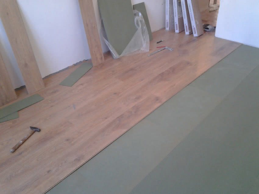 Основание. Главное требование – перепад по высоте на погонном метре не может превышать 2 мм. Ламинат настилается как на бетонные, так деревянные полы. Следует знать, что на деревянные основания нельзя укладывать гидрозащитную подложку. Она препятствует процессам испарения влаги из дерева, а это крайне негативно влияет на все несущие конструкции.