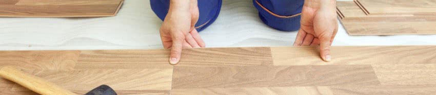 - Обрезанная доска вставляется под углом в замок и также защелкивается. Сделать это можно сильным нажатием руками, но также существует и специальная скоба для укладки ламината. Она позволяет подбивать молотком последний ряд.