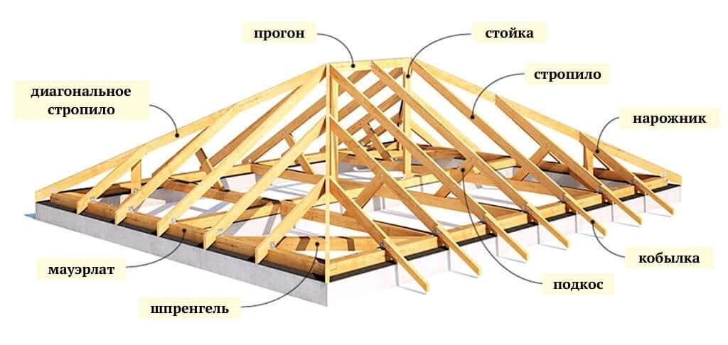 Чтобы процесс расчетов, которые предстоит сделать, был максимально простым, следует первостепенно ознакомиться с устройством крыши вальмового типа. Это позволит понять, какие именно элементы нуждаются в расчетах.