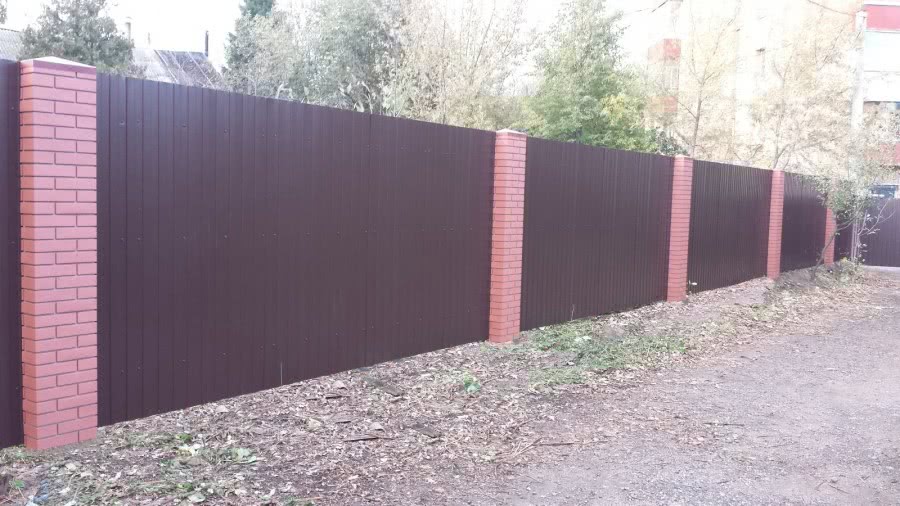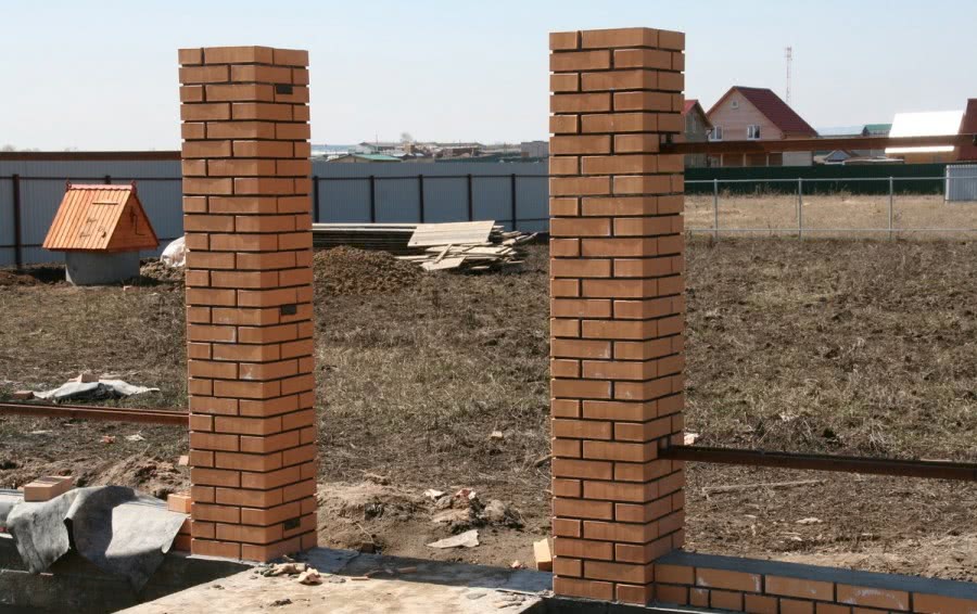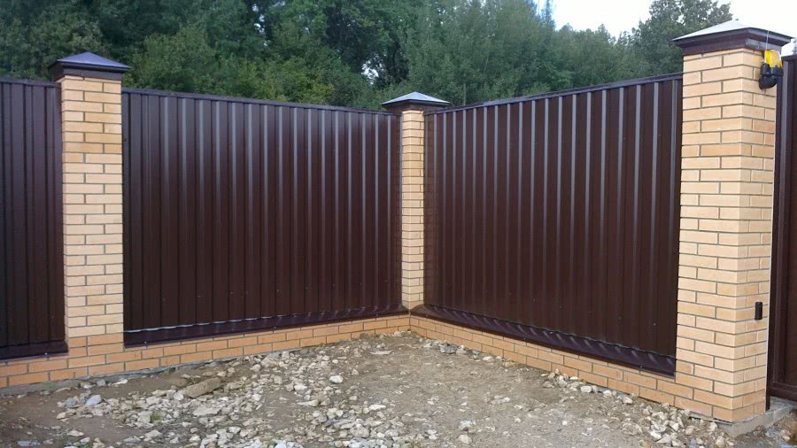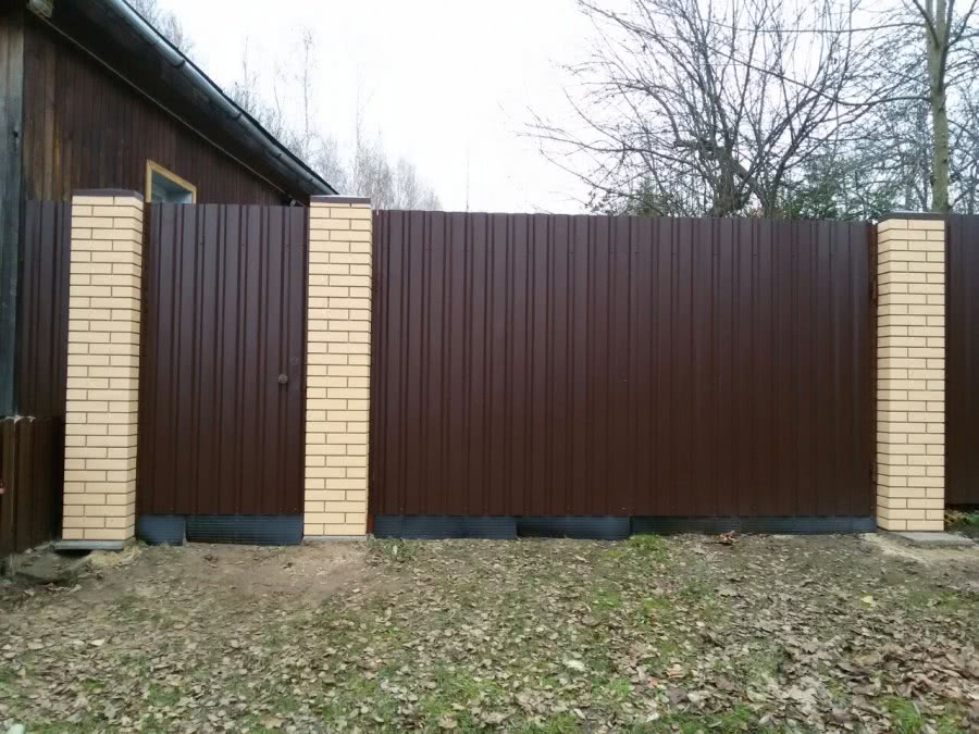 Когда монтируются кирпичные столбы, то масса забора резко увеличивается. Для устойчивости конструкции, повышении ее долговечности, требуется заливка фундамента.