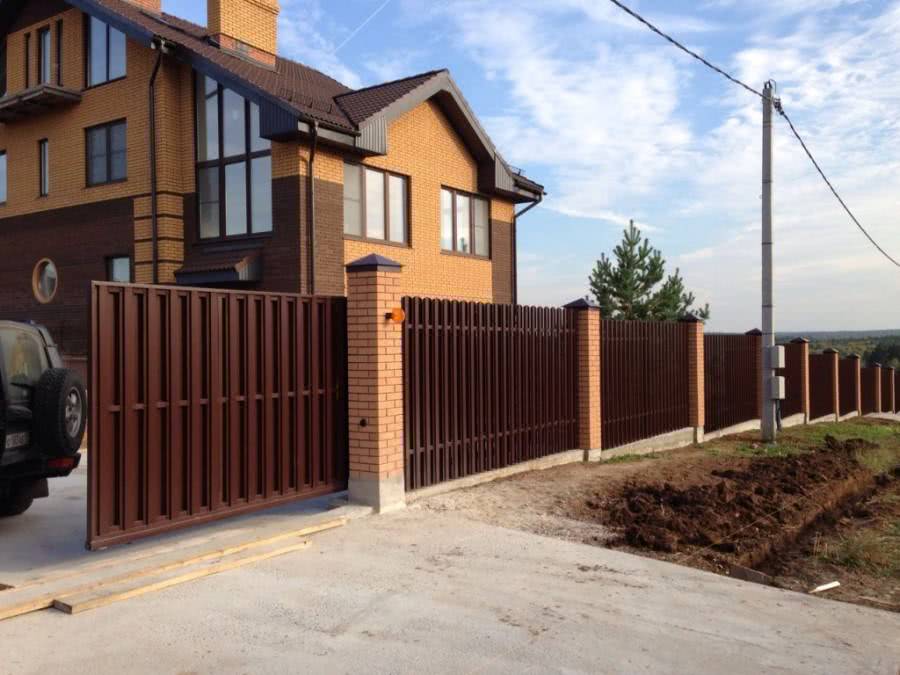 Для многих хозяев имеют значение помпезность и прочность, сочетаемость с остальными постройками. А кто-то предпочитает простой и быстрый монтаж, гарантированный срок службы и надежность крепления. Хотя последний параметр во многом зависит от расстояния между построенными или вкопанными столбами и ширины применяемой секции.