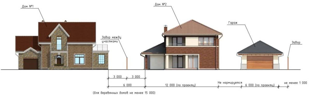 - Пожарным. Устанавливают, где должен находиться дом в зависимости от материалов, их которых он построен, а также расстояние от него до других сооружений.