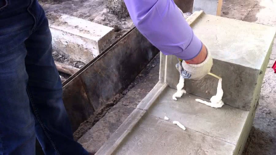 - Наружные стыки между блоками забросайте цементом: пена деформируется под влиянием солнечных лучей.