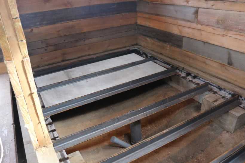 Для деревянного пола основание парилки в бане делается из лаг, которые сначала устанавливают между фундаментом в одной плоскости. Внизу по их краям прибиваются рейки 40 на 40 миллиметров. Сверху на них кладут доски, а затем они покрываются пароизоляционной пленкой и лишь, после всего этого весь пол застилают гидроизоляцией в два слоя. На нее очень плотно ложится пол из досок.