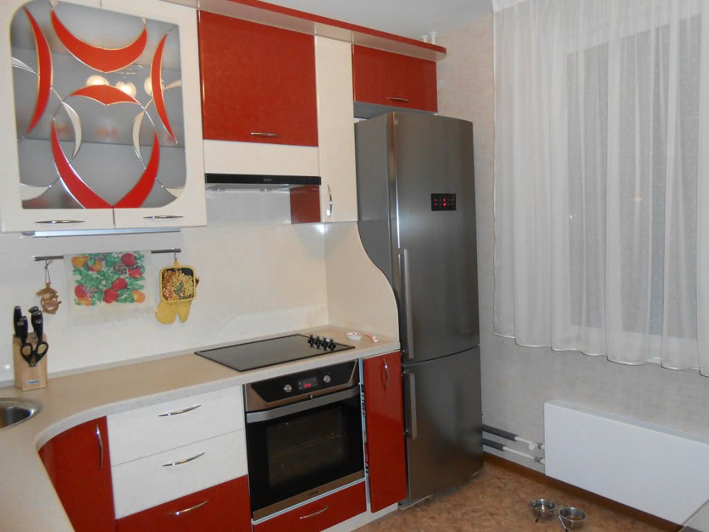 - установить холодильник в углу возле окна, рядом с варочной поверхностью.