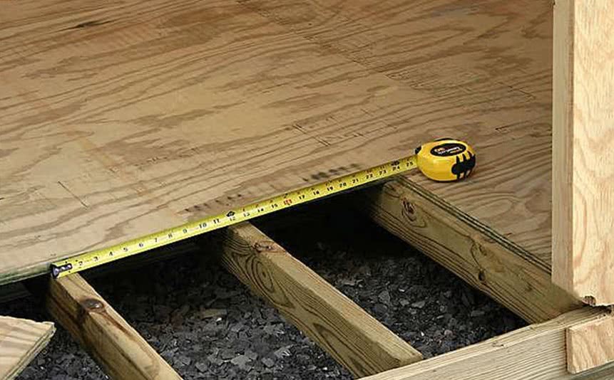 - Изучить состояние лаг: на что опираются, ширину шага (не более 60 см).