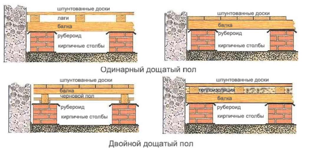 Пол из досок в один слой. Является самым простым вариантом пола. Подходит такая конструкция исключительно под летние постройки или жилье в теплых странах. Если в проекте здания предусмотрено что балки пола монтируются в стенах, то расстояние от одной балки до другой, чаще всего, слишком большое, чтобы выполнить сразу кладку досок.