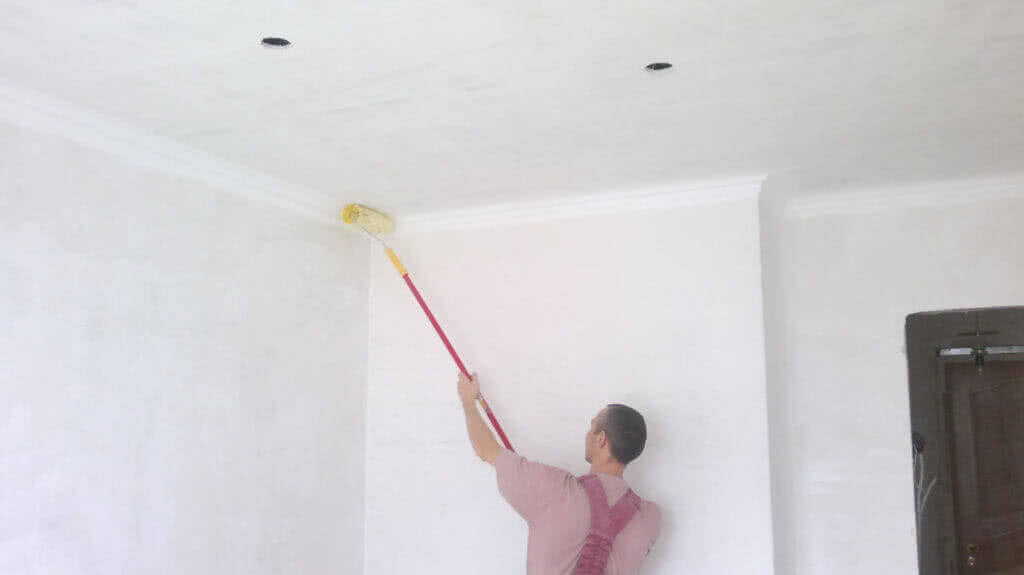 - основные работы с поверхностью потолка, нанесение строительных смесей;
