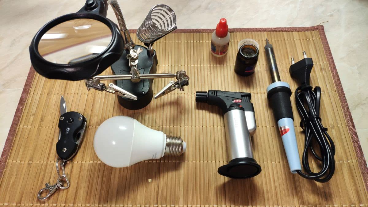 Ничего сверхъестественного из инструментов приобретать не придется. В каждой семье обычно есть паяльник, желательно, чтобы он был с тонким жалом. Вместе с ним обычно имеется припой и канифоль (либо флюс, содержащий припой), либо кислота для пайки. Также будут нужны и пинцеты — без них никуда.
