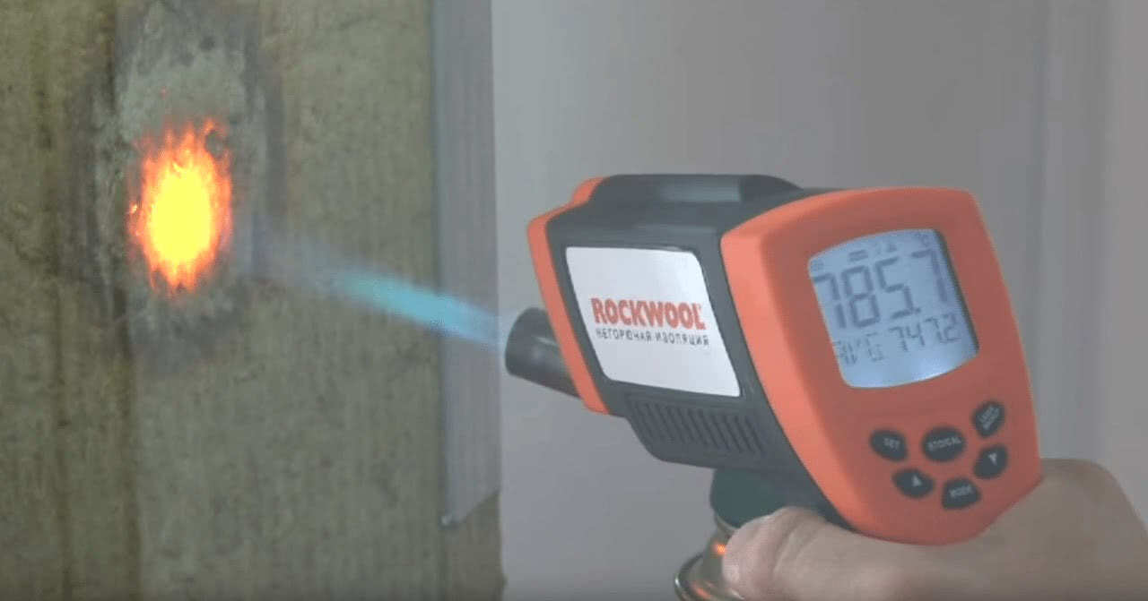 - Огнестойкость. Минвата Роквул отличается высокой пожаробезопасностью, так как относится к классу негорючих материалов. Выдерживает температуру до 1000 градусов.