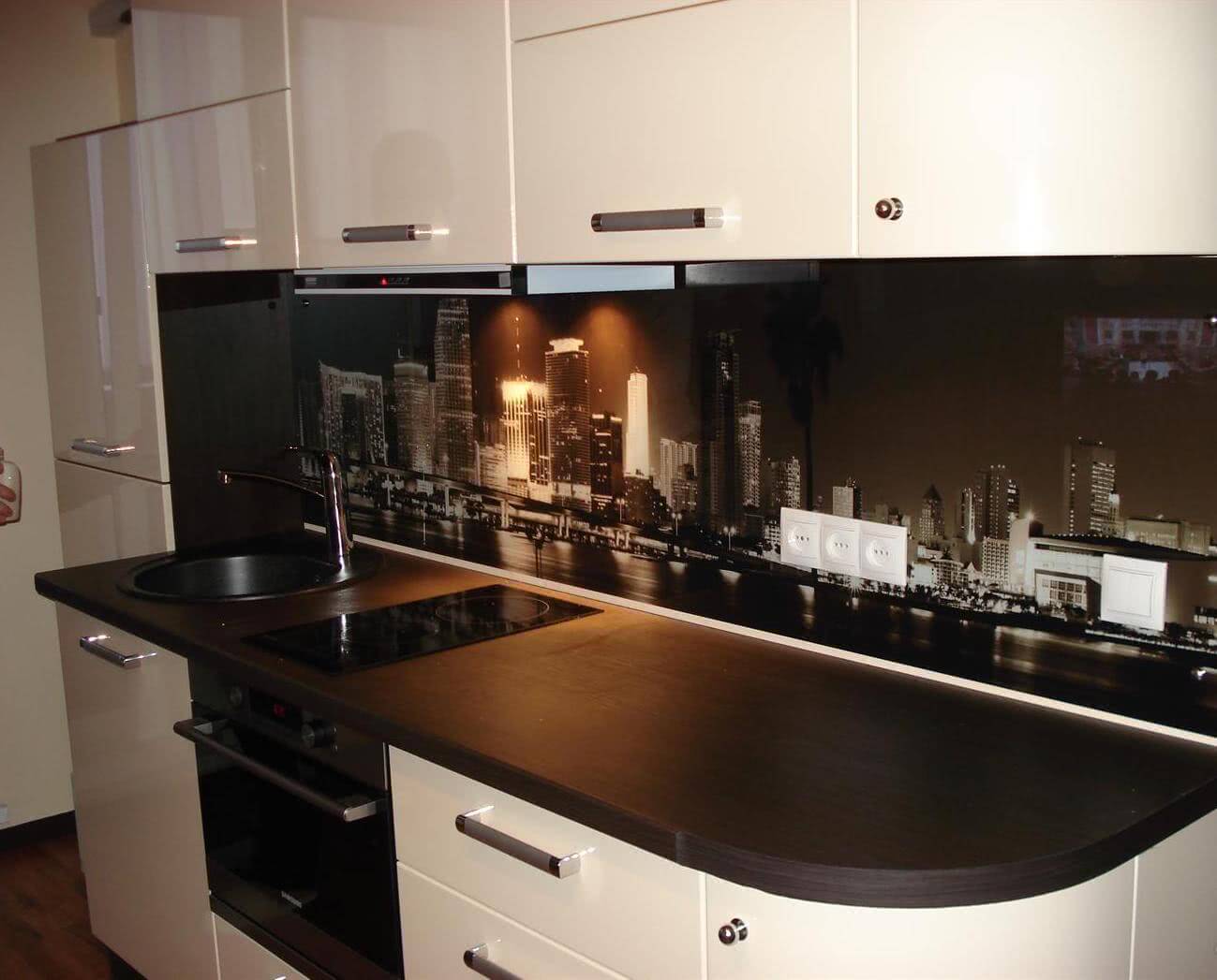Не все готовы жертвовать красотой ради удобства. Для некоторых заказчиков неприемлемо, чтобы розетки портили вид фартука, особенно это касается фотопечати. Вырез под электроточку закроет важный элемент рисунка, а вилки, торчащие из стены, еще больше усугубят картину.