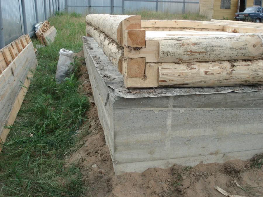 После того как фундамент под сруб будет готов, обязательно следует выполнить его гидроизоляцию, используя для этого рубероид, мастики и другие материалы.