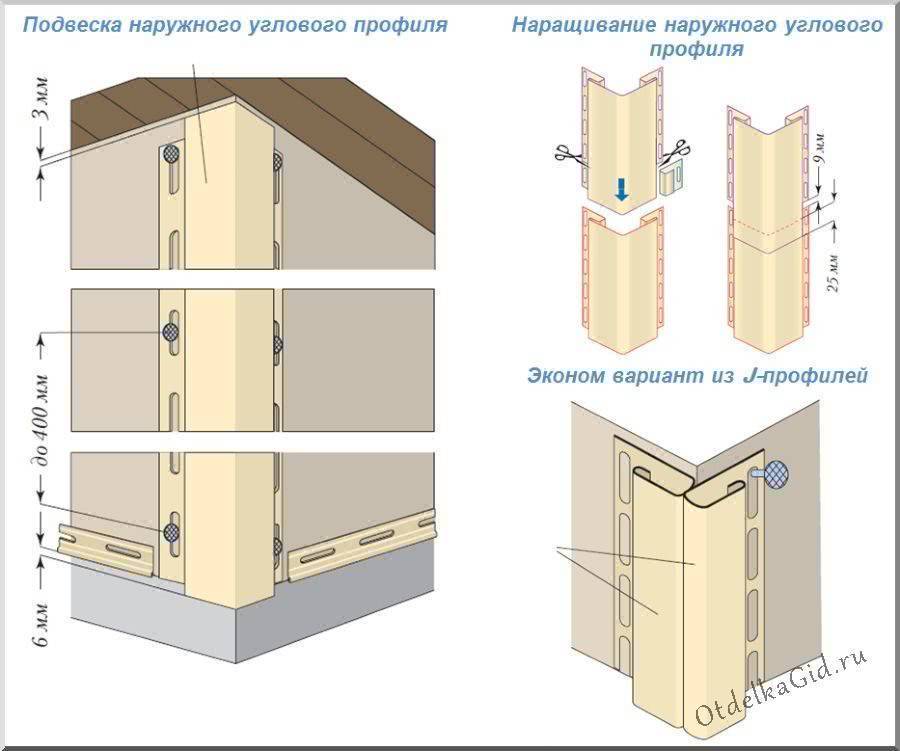 Если высота фасада больше 3 м, то направляющие придется накладывать друг на друга. Снизу должен быть целый профиль, а верхний следует подрезать. Рейки необходимо состыковать на одном уровне во всех местах.