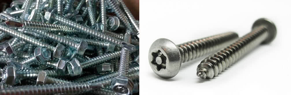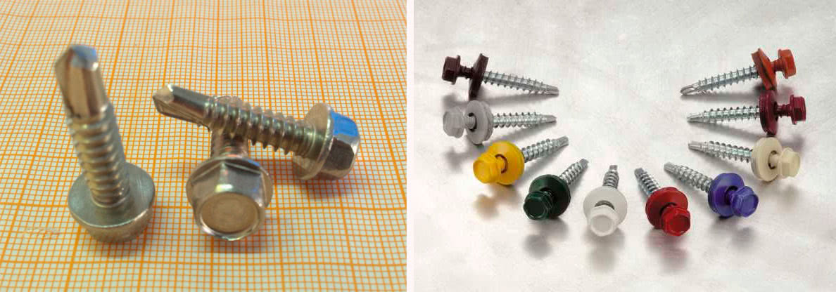 Главным отличием таких крепежей является особый кончик в виде сверла, а также конусовидная шляпка либо прессшайба. Для работы с этим видом винтов не требуется дополнительное просверливание поверхности. Острый кончик разрывает металлический лист и вдавливается в него. Благодаря специальной форме шляпки соединение элементов становится особенно прочным.