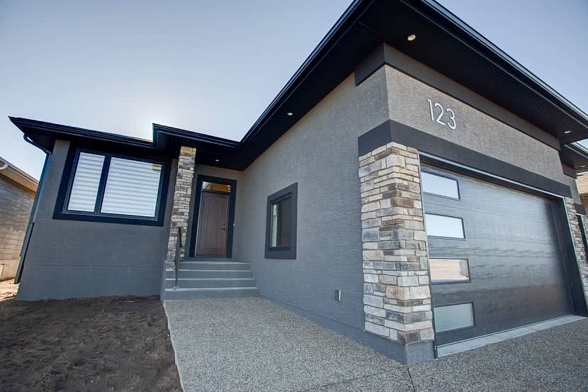 Декоративная штукатура фасада в комбинации с декоративным камнем на углах домаИсточник authenticdevelopments.com