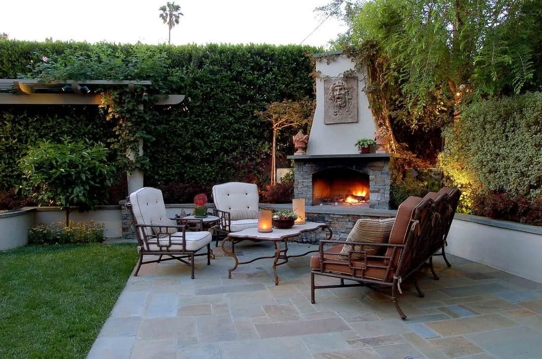Размещая на заднем дворе площадку, ориентированную для отдыха, целесообразно выровнять поверхность, засыпать ее обычной или цветной галькой. Долговечное покрытие обеспечат каменные плиты. В качестве ограждения можно сделать бордюр из бетонных или керамических блоков. Замечательно на такой площадке смотрятся яркие аксессуары которые украсят дизайн двора частного дома и придут ему индивидуальность.