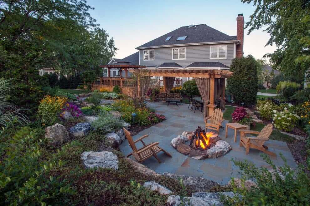 Проводить время у костра очень приятно, поэтому уместно будет организовать зону отдыха на даче именно вокруг него
