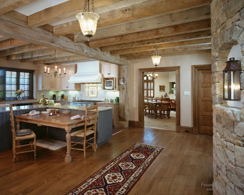 Интерьер кухни в деревянном доме: фото