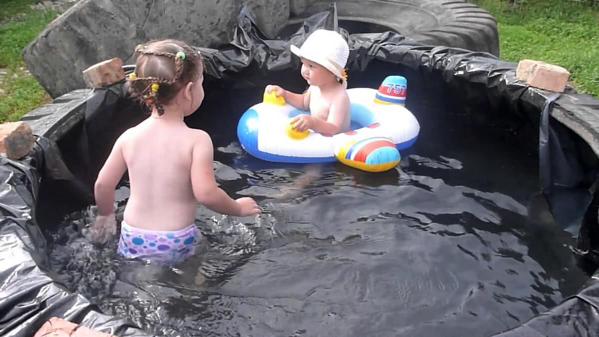 Завершит нашу подборку очень простая идея по изготовлению водоема из шины большого диаметра от тяжелой спецтехники.