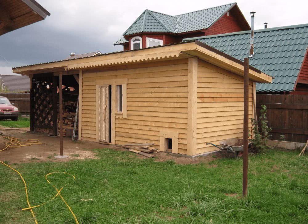 Односкатная крыша — оптимальный вариант для строения, предназначенного, чтобы хранить дрова, разные инструменты и другие вещи.