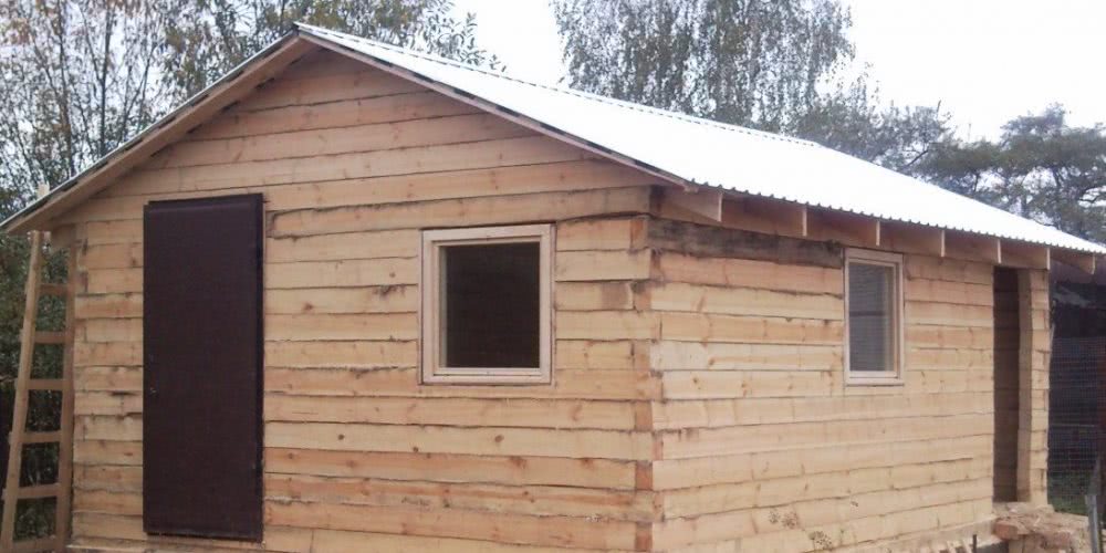 Сарай на деревянном каркасе с односкатной крышей, окнами на столбчатом фундаменте