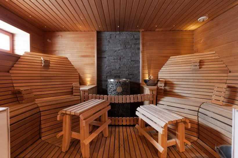 Парилка должна быть удобной и, что самое главное, безопасной. На каждого посетителя должно приходиться минимум 2,5 м³ пространства. Высота помещения должна составлять 2,5-2,6 м. Для обшивки стен используется сухая абсорбирующая древесина (к примеру, сосна или тополь) без сучков.