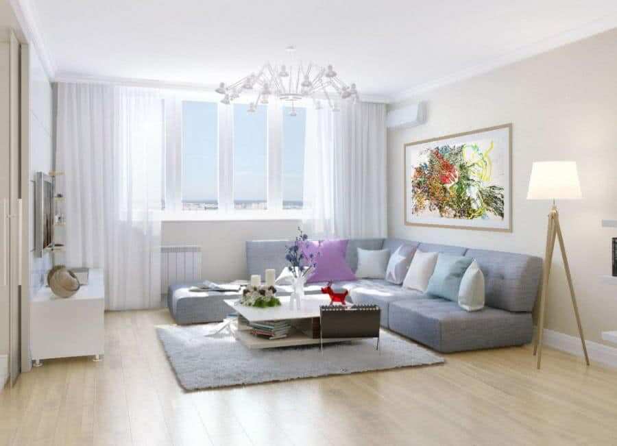 Чтобы зрительно расширить и осветлить комнату, нужно «размыть» границы между разными плоскостями. Лучшее решение — окрасить стены и пол в светлый оттенок, желательно — близкий к белому. Темные полы сильно поглощают свет, но в затемненных помещениях большой площади можно не осветлять их. Чем меньше по размерам комната, тем светлее должен быть цвет напольного покрытия.