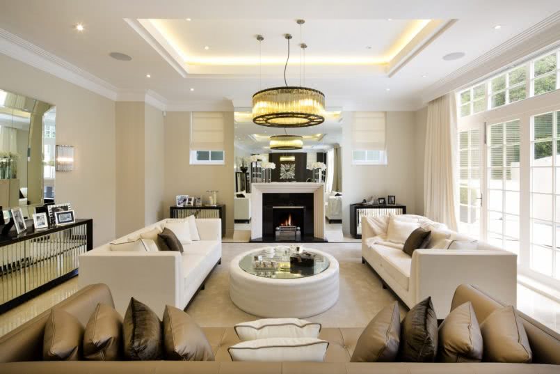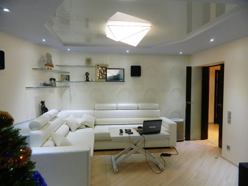 Этот только некоторые из вариантов компоновки люстры с точечными светильниками в гостиной.