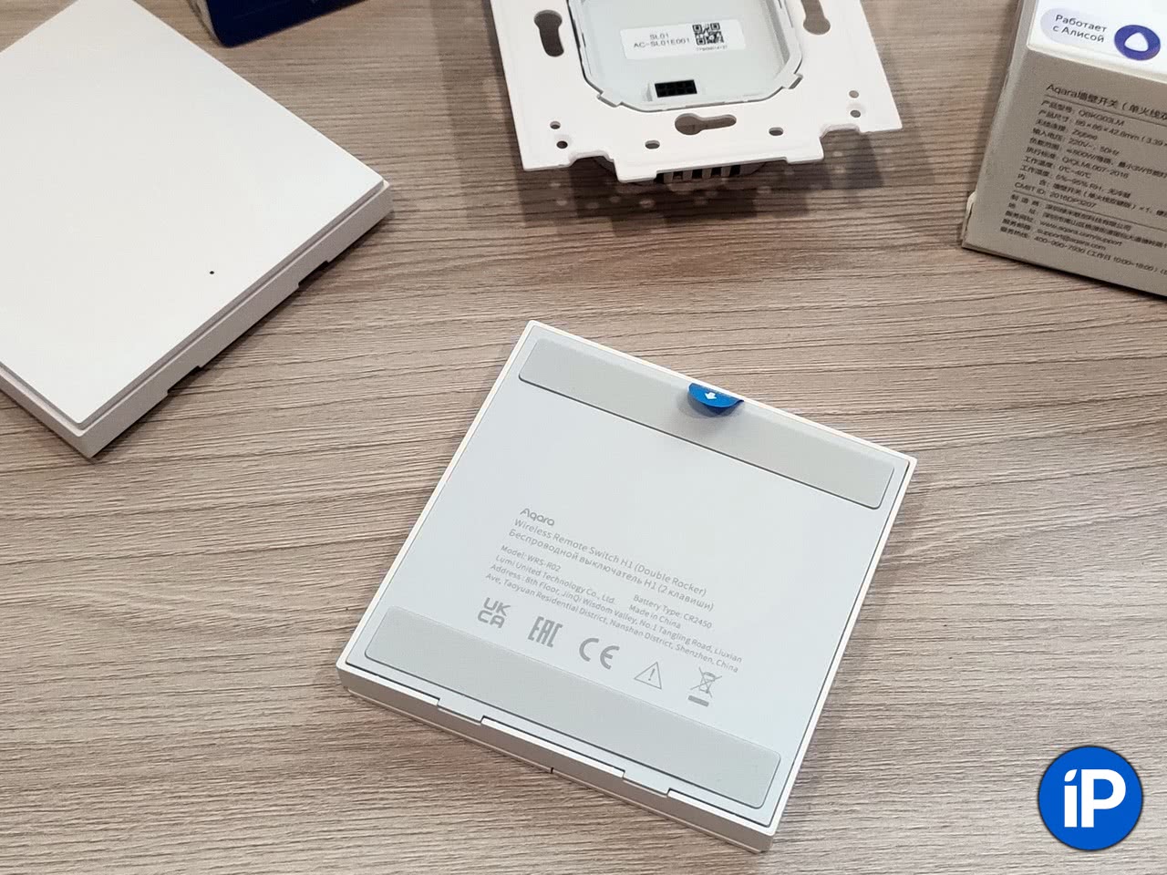 Для питания беспроводной выключатель использует LiPo-элемент типа CR2450 («плоская таблетка»), аналогичный используемым в материнских платах. Производитель обещает 5 лет работы без замены, и, зная актуальное энергопотребление и ёмкость таких батарей, нет поводов ему не верить.