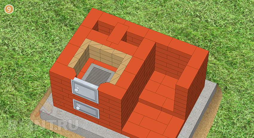 - Топочный проем не должен быть излишне высоким. Делать его выше 9 рядов не следует – это приведет к тому, что тяга будет слабой, из-за чего дым будет идти на участок. По той же причине не делают слишком большим дымоход.