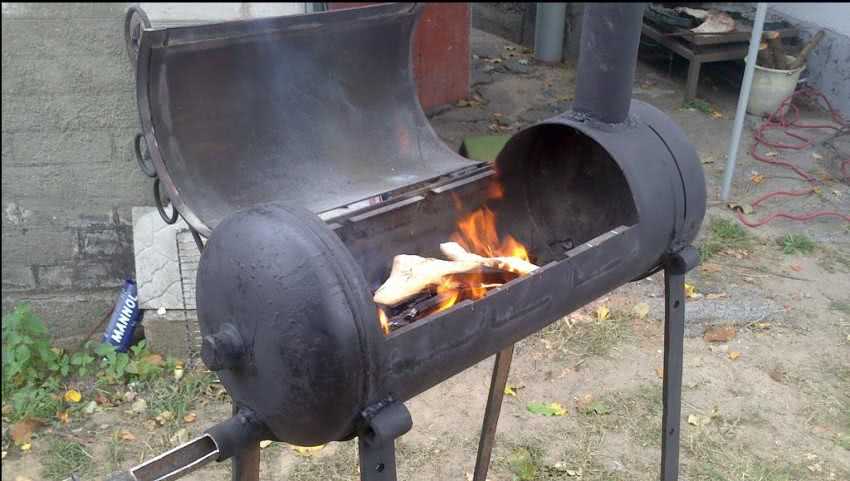 Альтернативным способом создания является изготовление барбекю из бытового газового баллона объемом 50 литров. Они совсем не дороги. Дело в том, что со временем нужно проходить их аттестацию для возможности их заправки. Старые баллоны её не проходят, но при этом они не теряют своих свойств. Их изготавливают из хорошей толстой стали толщиной 3 миллиметра. Стенки могут не прогорать в течение многих лет эксплуатации.