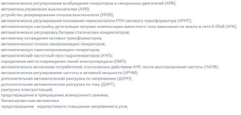 Отдельно хотелось бы также рассмотреть виды электроавтоматики, назначение которой в отличие от релейной защиты наоборот включать питание обратно. Итак, в современных РЗА используют автоматику следующего вида: