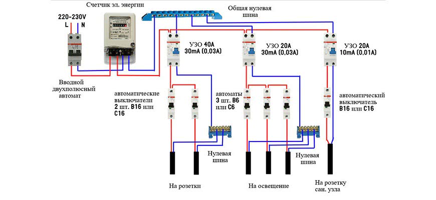 - Влажные и сухие помещения запитываются через аппараты с разной чувствительностью.
