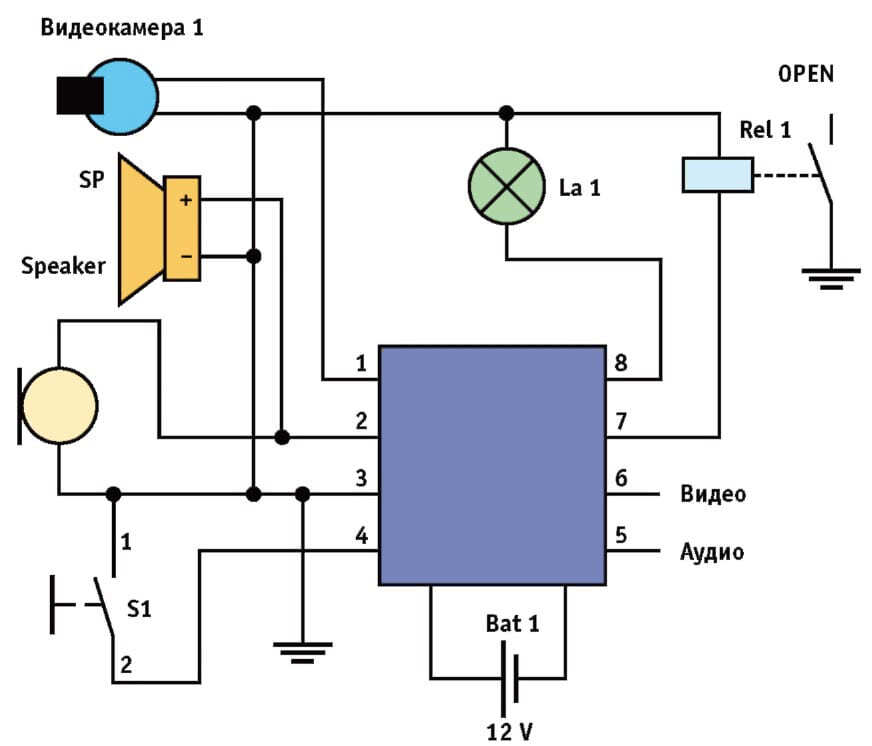 Заводим и фиксируем трубку в штробе и приводим в эстетический вид, при помощи цемента и шпаклевки. Простая схема видеодомофона Самый доступный вариант создается при подключении монитора видеодомофона непосредственно к вызывной панели, расположенной около входной двери.
