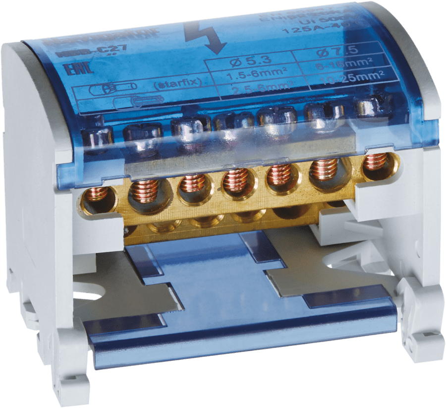 Допустимый ток для использования кросс-модуля в электросети 100-125 А, номинальное напряжение 500В.