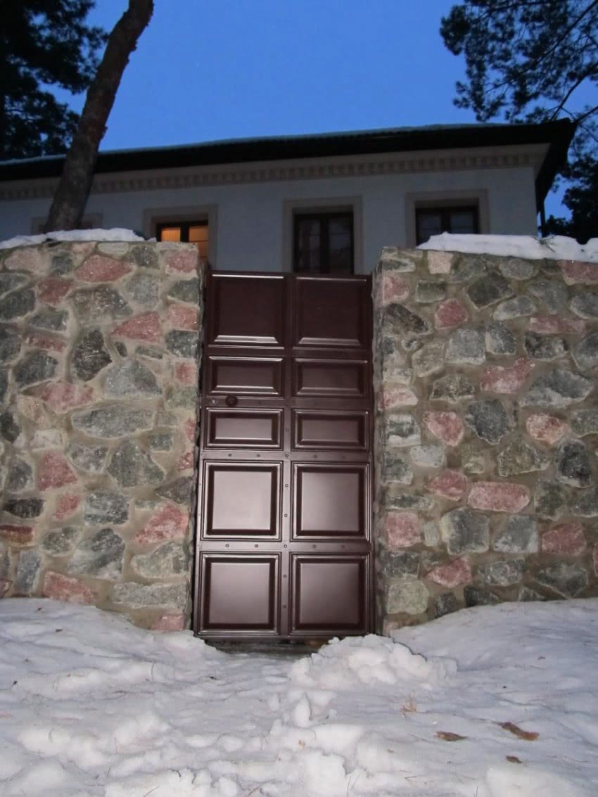 В первом случае поверхность двери будет сплошная, состоящая, например, из единого пласта металла. На ней не должно быть зазоров, щелей. Такие сооружения чаще всего устанавливают в том случае, если сам забор является сплошным. Материал также лучше всего подобрать такой же, в данном случае металл.