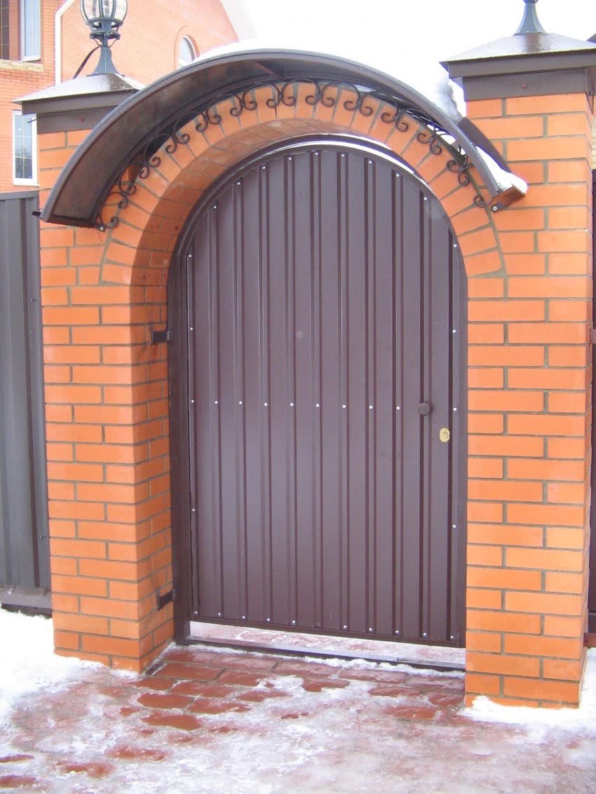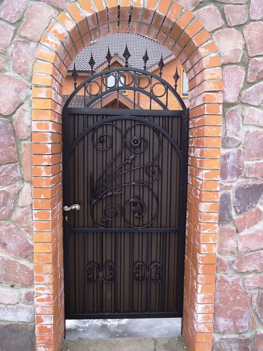 В том случае, если дверь выполняется из металла, он может быть как листовым, так и кованым. Также возможно использование металлопрофиля. Единственный случай, когда материалы калитки и забора могут не совпадать, это тогда, когда забор выполнен, например, из кирпича. Понятно, что в таком случае делать дверь из кирпича не станешь, придется использовать другой материал. Такие варианты также можно просмотреть по фото в интернете.