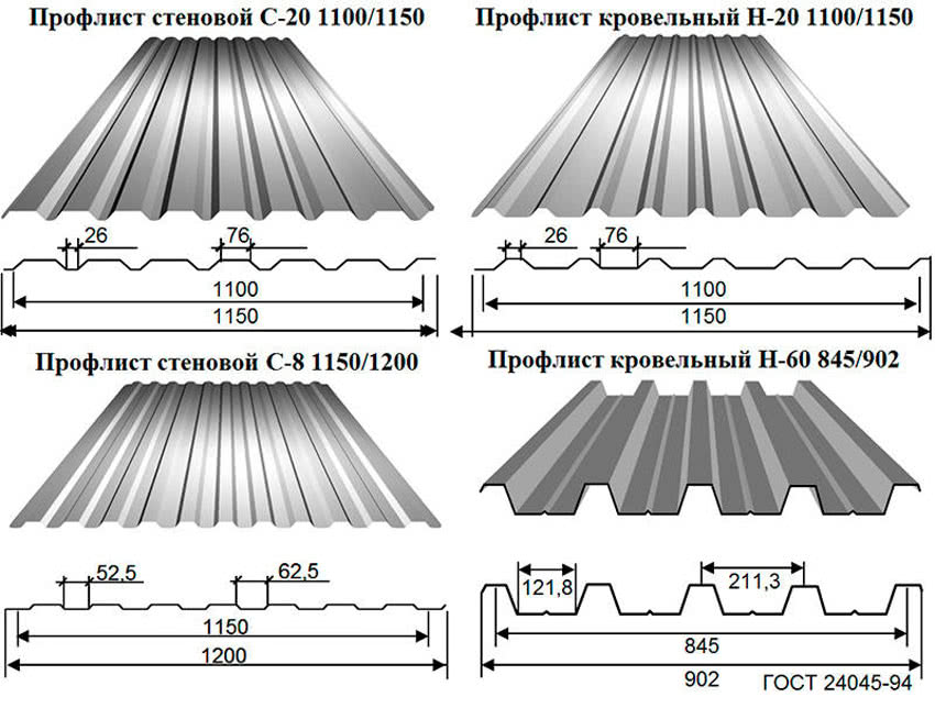 Стандартные и максимальные габариты профлиста: общий и рабочий