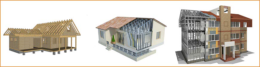 | Деревянный каркасный дом | Дом с металлическим каркасом | Дом из ЛТСК |
