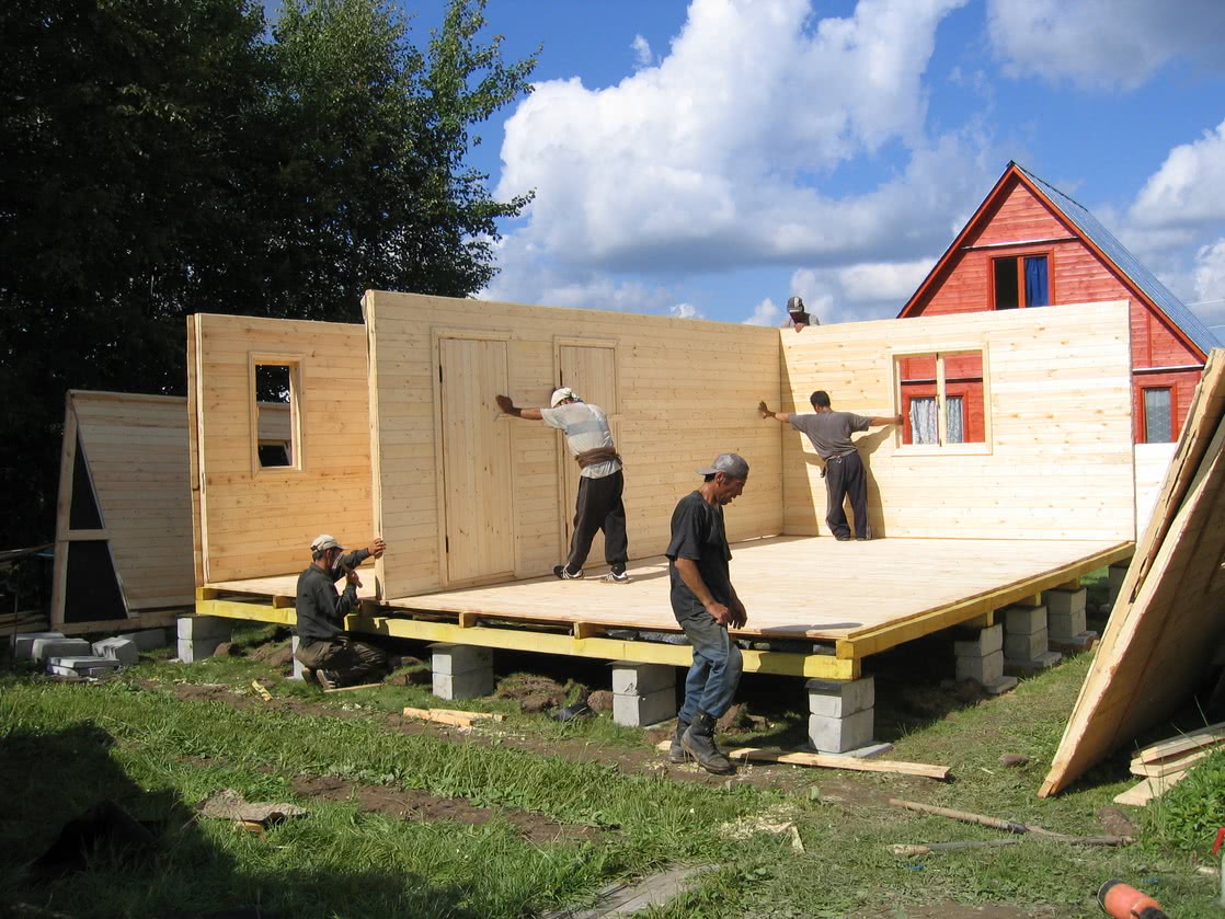 Сборка конструкции будущего щитового дома производится на том месте, которое предназначено под его постоянную установку. Во время сборки работники, а именно семья, проводят все строительные работы с особой ответственностью.