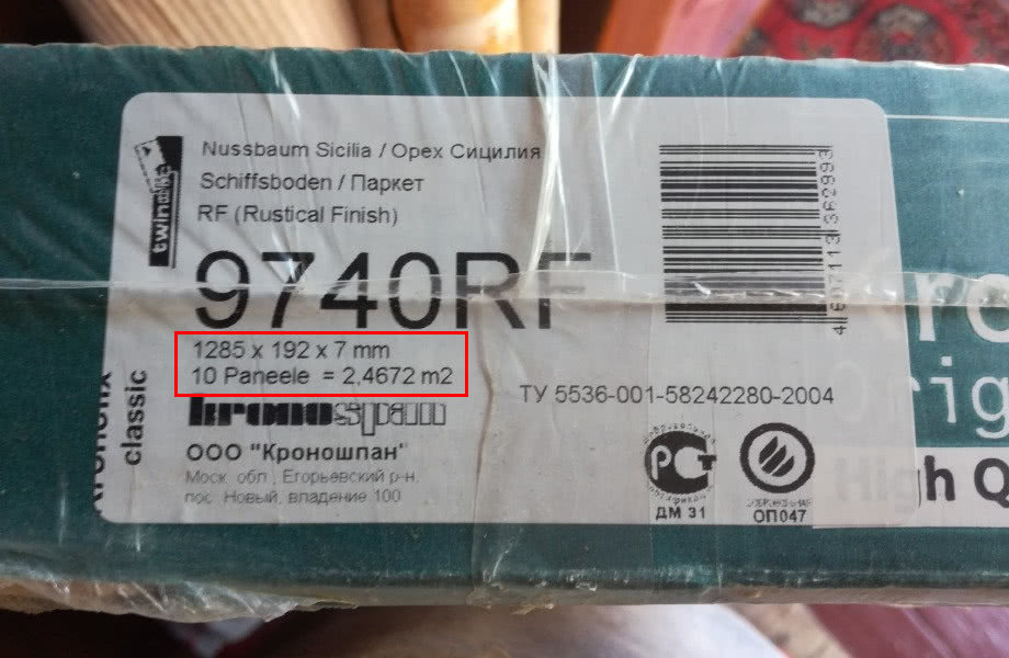 На каждой пачке указывается вся информация о ламинате